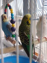 Dalğalı tutuquşular cütü - Növ: Budgerigar (dalğalı tutuquşu) - Rənglər: biri mavi-ağ zolaqlı, digəri tam ağ (albinoya yaxın) Quşlar yumurta verən quşlardır bir biriləri ilə çox yaxşı yola gedirl...