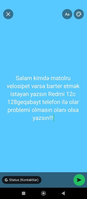 - Matorlu velosiped ilə barter etmək istəyənlər üçün.