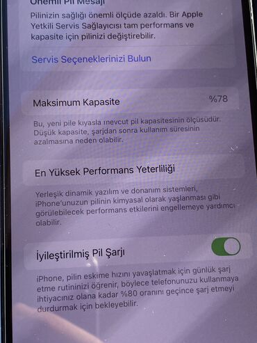 Telefonda heç bir problem yoxdu. 78% pildi. Heç bir şeyi dəyişilməyib hər şeyi zavoddu. Face İD işlək True Tone işləkdir. Cızıqdan, əzikdən və ya sınıqdan söhbət belə gedə bilməz. Bir söznən ideal ...