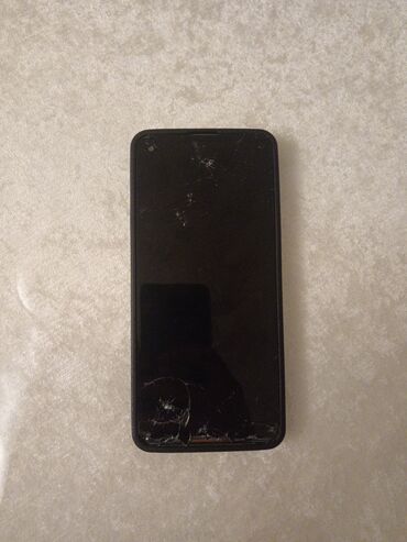 - 2-ci telefon tünd mavi arxa qapaqlı, iki arxa kameralıdır; ön şüşədə çatlar görünür.