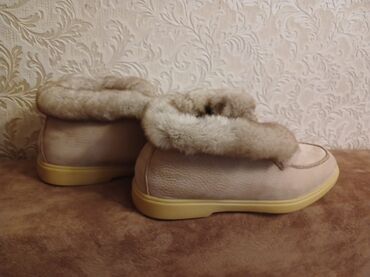 - Material: təbii dəri üstlük, içlik qalın xəz/şerling; ayaq üstünü tam əhatə edir, istiliyi yaxşı saxlayır