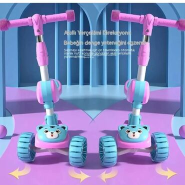 Scooter 🌀 Açılıb yığılır 🌀 Oturub sürmək olur 🌀 işıqlı 🌀 səbəti ve fırfırası var 🌀 rəng: sarı . qırmızı . yaşıl . çəhrayı . mavi 🌀 7 yaşa qədər