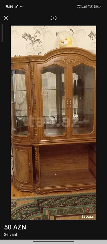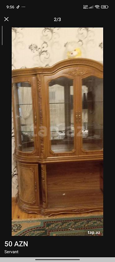 Servant – klassik üslubda vitrinli bufet - Material: taxta (qəhvəyi