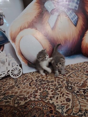 Boz rəngli, yumşaq tüklü şirin pişik balaları 1 ana 3 bala pişikdir tək təkdə satılır 4 ü birlikdə endirim olacaq - Cinsə bənzər xüsusiyyətlər: qısa və qalın tük, iri dairəvi gözlər, enli baş, yu...