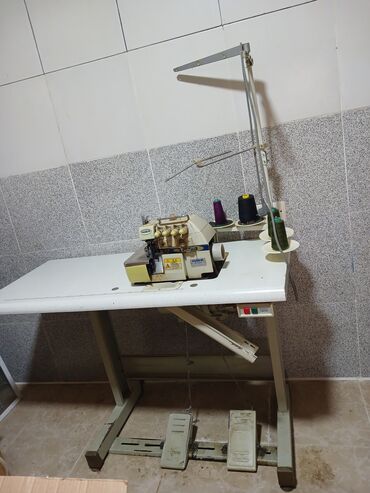 Sənaye overlok tikiş maşını – stol və pedallı komplekt - Tip: Overlok (kənar emalı və overlok tikişi üçün) - Komplekt: metal iş masasının üstündə quraşdırılmış maşın, ayaq pedalı, elektrik mühərri...