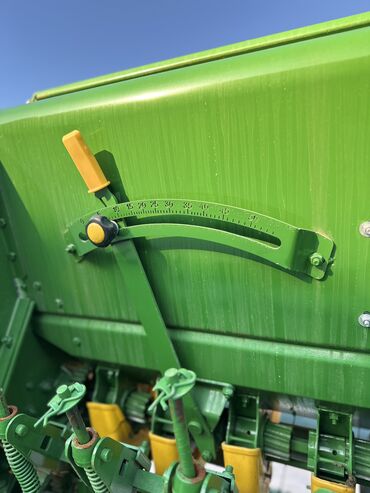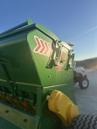 Yaşıl rəngli kənd təsərrüfatı səpinqi maşını (taxıl/yonca/çəmən toxumu üçün universal səpin aqreqatı). Xüsusiyyətlər: - Traktorla qoşqu tipli; geniş işçi eninə malik çoxsıralı səpin sistemi - Üst ...