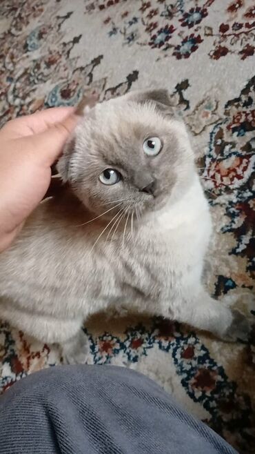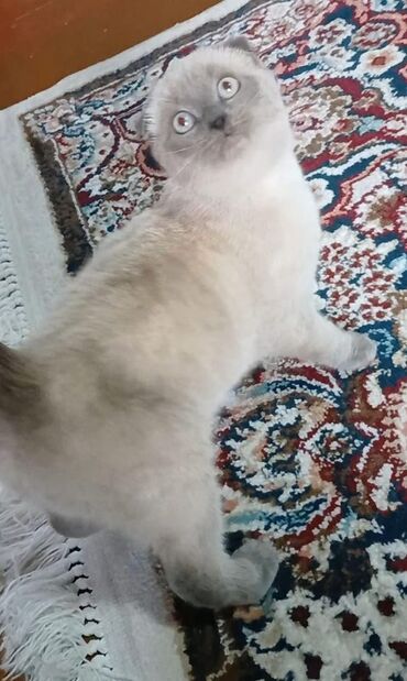 Şəkillərdə gördüyünüz pişik realdır; qatlanmış qulaqları və mavi gözləri ilə nadir rəng kombinasiya təqdim edir. Evə istilik və sakitlik gətirən zəkalı, mehriban yoldaşdır.