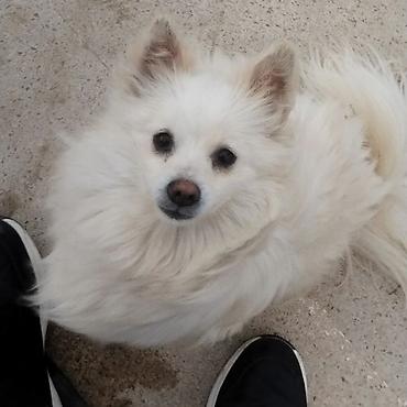 Bu, ağ rəngli, tüklü xəzi olan şpits cinsindən olan bir itdir. Kiçik ölçülü və sıx, yumşaq xəzə malikdir. İtin qara burun və gözləri var. Ümumilikdə, bu it canlı və şən görünüşə malikdir, bu da onu...