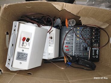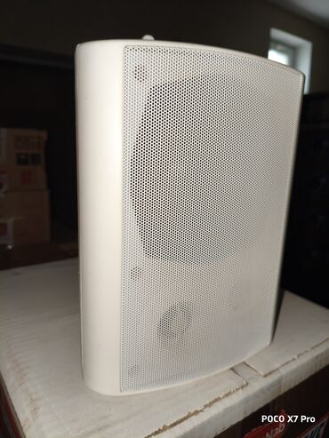 - 2 ədəd divar/raf tipli akustik kolonka: arxa paneldə yaylı terminallar; üzərində montaj üçün metal kronşteyn yuvaları. Etiketdə: maksimum güc 30W, giriş gərginliyi 100V/70V (PA xətt), 8 Ohm rejimi dəstəkli.