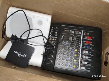 - MXQ Pro 4K TV Box: HDMI, USB və AV çıxışları; multimedia mənbəyi kimi mikserə/kolonkaya qoşula bilər.