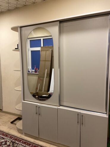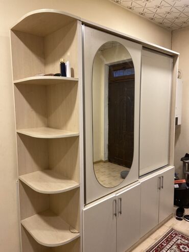 Ölçülər təxmini (şəkillərə əsasən): hündürlük standart otaq hündürlüyünə uyğun, en genişliyi iki sürgülü qapı və kənar rəfləri əhatə edir. Şəkillərdəki bütün hissələr komplektdir. (Təcili satılır Real alıcıya endirim olunacaq)