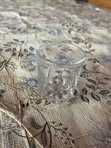 Şüşə stəkan dəsti – 2 ədəd - Material: şəffaf bərk şüşə - Forma: silindrik, kənarları vertikal relyefli - Hündürlük: təxminən 7–8 sm - Ağız diametri: təxminən 5–6 sm - Dib hissəsi qalınlaşdırılmış...