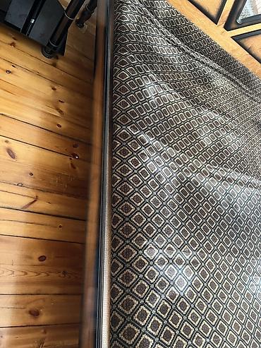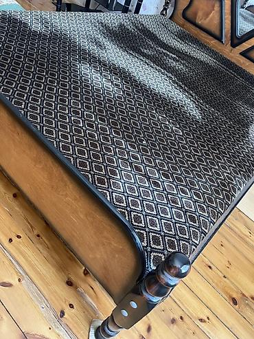 Taxta çarpayı - Material: möhkəm taxta karkas, dekorativ naxışlı üst səth - Ölçü: təxminən ikinəfərlik (geniş yatma sahəsi) - Konstruksiya: dörd bərk ayaq, iki tərəfdən yan taxtalar və yüksəldilmi...