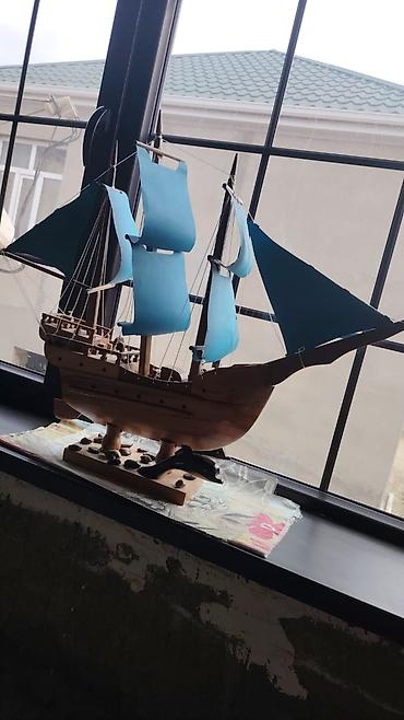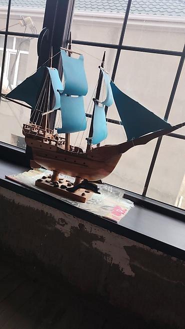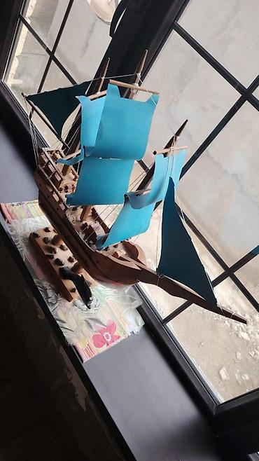 Taxta yelkənli gəmi maketi - Material: tam ağac konstruksiya, əl işi