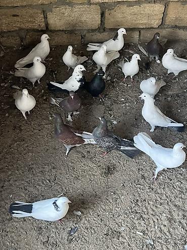 Cins: göyərçini Rəng: 1 eded qırmızı boynuĝüllü desde kekilli boyun pecat damazlıq ,qiymet biri 50 manat