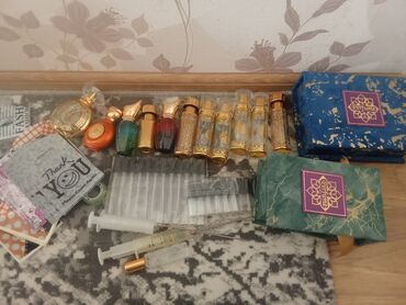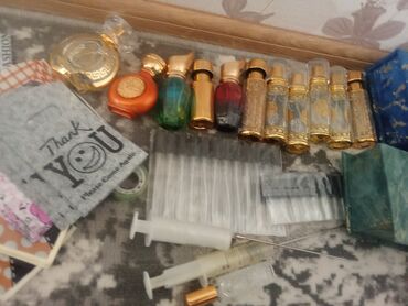 - Müxtəlif dizaynda şüşə ətir flakonları: klassik dairəvi, dekorativ qızılı naxışlı, rəngli və kristal qapaqlı variantlar (kiçik həcmlər, əl ətiri üçün uyğundur)