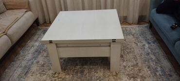 - Transformasiya olunan dizayn: aşağı hündürlüklü kofe masası kimi istifadə olunur, mexanizm vasitəsilə qaldırılıb genişləndirilərək yemək masasına çevrilir.