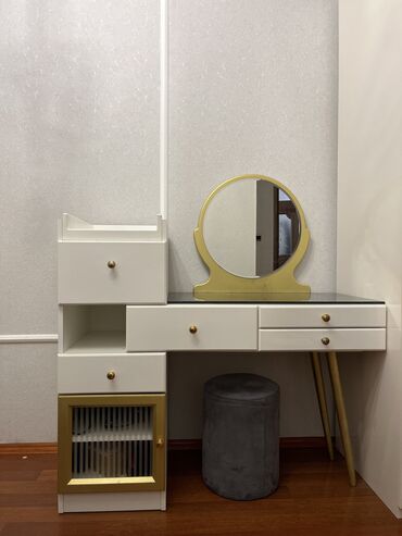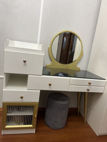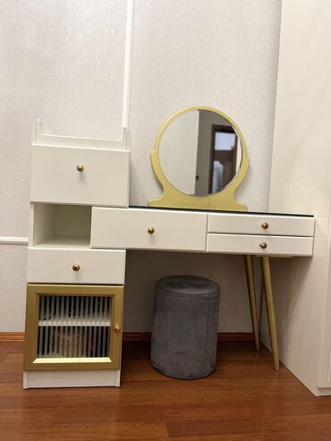 Mebel dəstləri – makiyaj masasları və çekmecdən ibarət seçimlər - Makiyaj masası (şkaflı və güzgülü modellər): - Düzbucaqlı və ya yuvarlaq güzgü variantları - 1–3 çekmece və əlavə dolab bölməl...