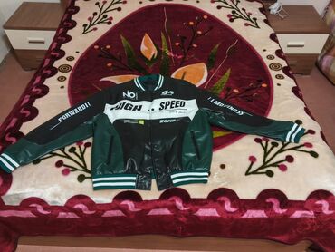 - Material: eko‑dəri görünüşlü xarici səth, trikotaj zolaqlı rezin manjet və bel (yaşıl‑ağ), daxili astar