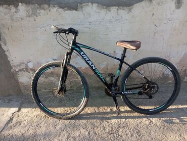 - Çərçivə: yüngül alaşımlı hardtail, qara rəngdə yaşıl-aqua aksentlərlə “URAN 900” loqosu
