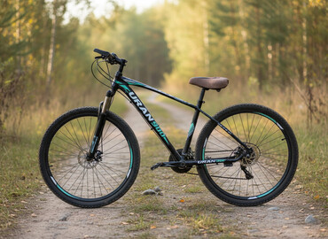 Dağ velosipedi – mat qara rəngdə, klassik hardtail konstruksiya. Özəlliklər: - 29" (təxmini) təkərlər, qalın protektorlu off-road şinlər - Ön amortizatorlu вилка (suspension fork) – yol kələ-kötür...