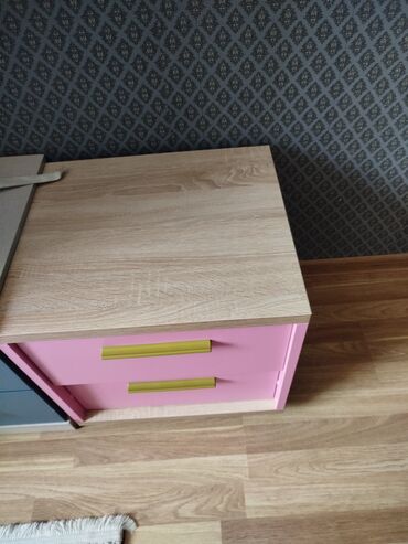 Uşaq/yeniyetmə otağı üçün uyğun mebel dəsti Komplekt tərkibi: - 3 çekmecəli komod: dalğavari üst örtük, ağ üst tabla, çəhrayı korpus, ürək formalı ağ tutacaqlar. - Ayna: komodun üzərinə yerləşdiril...