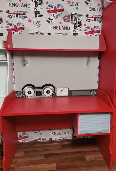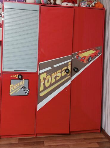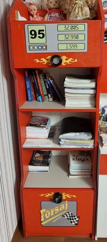 - Kitab rəfi: Eyni üslubda qırmızı korpus, çoxsaylı açıq rəflər. Yuxarı və aşağı hissədə qapaqlı bölmə, üzərində “Forsaj”, 95 və yanacaq göstəricisi temalı dekorlar; ortada təkər formalı dekor düymələr. Dərsliklər, oyuncaqlar və aksesuarlar üçün geniş saxlama imkanı.