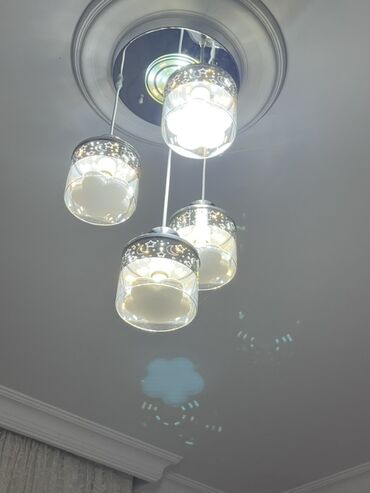 - Materiallar: Metal baza (krom/nikel tonlu), şəffaf akril/şüşə plafonlar, dekorativ güzgülü mərkəz hissə.