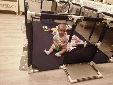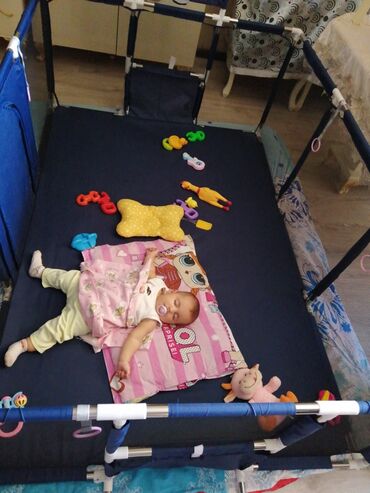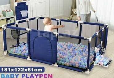 Oyun maneji – geniş ölçülü uşaq oyun bağı - Ölçü: uzunluğu təxminən 1.80 m, eni 1.20 hündürlüyü 65 sm , geniş (şəkildə göründüyü kimi) - Rəng: tünd mavi - Material: möhkəm metal/plastik karkas, nə...