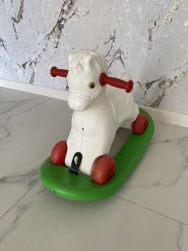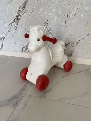 Üçü birlikdə satılır 1) Atdırma/ride-on at – ağ rəngli, qırmızı