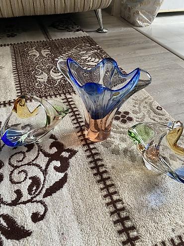 Böyük şüşə dekor dəst... hec bir problemleri yoxdu.tezediler. iwlenmeyib hamisi bir yerde 100 man.ayri- ayrida satilir. 2 eded konfet qabi 30. 2 eded guldan 40. bakallar 6 eded ve kampt qabi 40 ma...