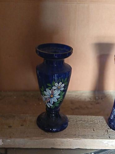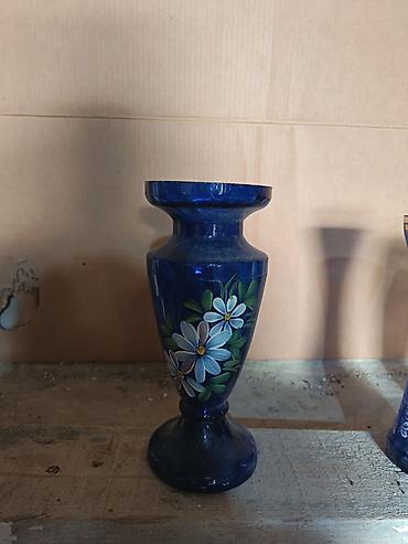 Böyük ölçülü dekorativ vaza dəsti - Material: qalın şüşə, güllü əl işı rəsmlər və qızılı rəngli dekor - Rənglər: kobalt-mavi və qızılı tonların kombinasiyası, bəzi elementlər yaşıl detallarla - Üz...