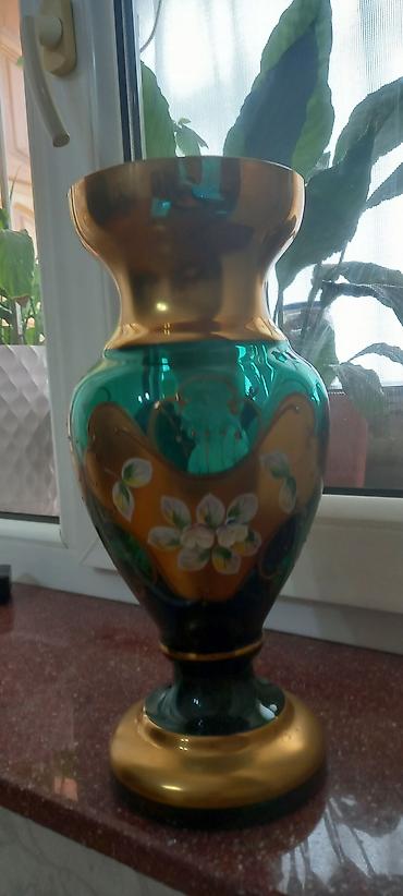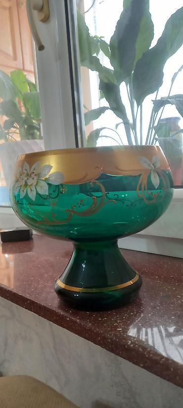 Yaşıl bagema dekorativ vaza - Material: qalın, keyfiyyətli şüşə - Rəng: dərin zümrüd-yaşıl, yarı-mat və parlak hissəli - Bəzək: qızılı naxışlı güllər və zərif qızılı haşiyələr - Forma: klassik, en...