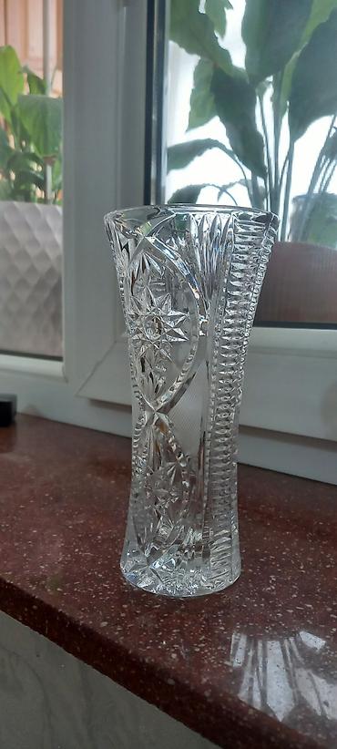 - Kəsilmiş şüşə vaza: şəffaf, relyefli-kristal üslubda oyma ulduz və xətt naxışları ilə. Dar baza, yuxarıya doğru açılan siluet. Tək saplı güllər və ya minimalist dekor üçün ideal.