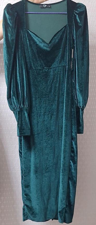 Bir defe geynilib yeni kimidir. Zümrüd-yaşıl məxmər gecə geyimi. - Parça: yumşaq, parlaq məxmər, bədəni incə göstərən elastik faktura. - Dizayn: V-ijəli qoşa kip ön büzgü, beldə parıldayan daş d...