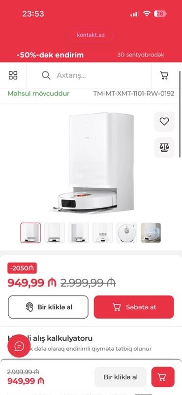- Qutusu mövcuddur (Robot Vacuum X20+). Şəkillərdə məhsul və model göstərilib.
