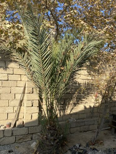 Satılır: Meyvəli xurma palmisi (Phoenix dactylifera) - Həyətdə böyüdülmüş, güclü gövdəli, sağlam və dekorativ xurma palmisi - Hündürlüyü təxminən 5–6 m, tacı geniş, sıx yarpaqlıdır - Ağac artıq mə...