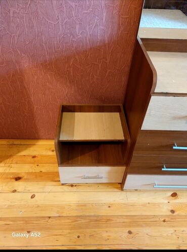 - İki nəfərlik yataq çarpayısı: taxta karkas, başlıq hissəsində açıq rəf bölmələri. Üstündə ortopedik tipdə ikitərəfli döşək.