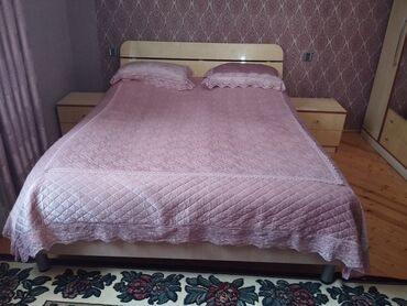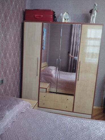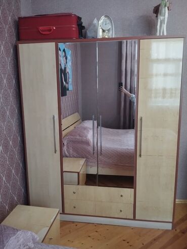 Yataq otağı dəsti – klassik və zərif dizayn Tərkibi: - Çarpayı (yumşaq başlıq, qızılı detallar) - 2 ədəd tumba - Güzgülü makiyaj/komod masası (çekmece və dolab bölməsi ilə) - 4 qapılı şkaf: orta h...