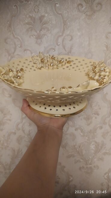 İtaliya istehsalı La perla markası İnce farfor bej reng meyvə vazası Cutu 250 manat.