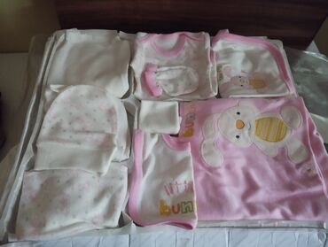- 1 ədəd köynək/bodi (ağ-çəhrayı, xırda naxışlı)