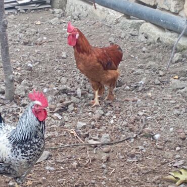 - Şəkillərdə bir neçə xoruz və toyuq görünür: qara-ağ ləkəli, boz-qonur zolaqlı və qırmızı-qəhvəyi rənglər.