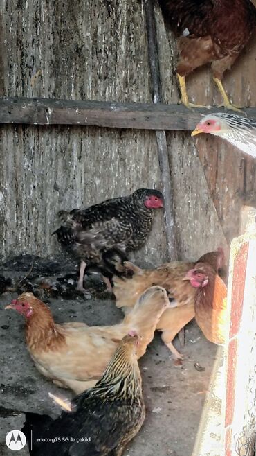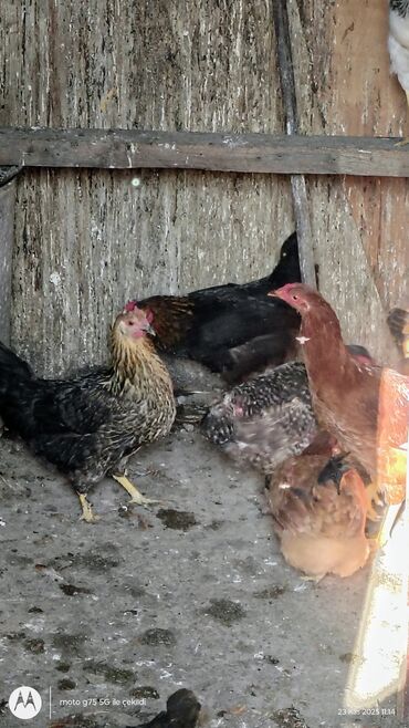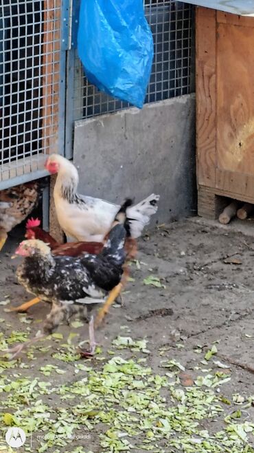 Qoçqar toyuqları paketi qarışqa reng - Şəkildəki kimi bir neçə ədəd kənd toyuğu və cücələr/yarımyaşarlar bir yerdə. - Rənglər: ağ, qara-ağ naxışlı, qızılı-qəhvəyi. Quyruqları dolğun, daraqları form...