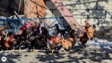 Məhsul: Ev təsərrüfatı üçün toyuqlar və xoruzlar Təsvir: - Açıq həyətdə sərbəst bəslənən müxtəlif cinsli toyuqlar və xoruzlar. - Rəng çeşidi: ağ, qara, qırmızı-qonur, ləkəli/zolaqlı və qarışıq rən...