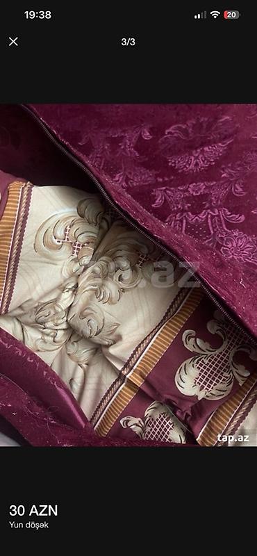 Yun dosək təzə 1neferlik 40m olcu 90*2yə 2 nəfərlik 80m olcu 160*2yə tuk yazstiqlar 20 olcu 70*70ə yorgan 1nefetlik 40m olcu 150*2yə 2neferlik yorgan 2*2yə təzə kravatlarda var 1neferlik 60m ...