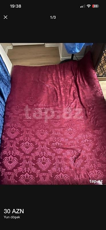 Ənənəvi yuxu döşəyi – iri ölçülü icerisinde 12kq yun var yeni duzeldilib satis ucun ..2ededdie bir ededi 50azn - Üzlüklü, qalın və həcimli döşək - Üst parça: tünd bordo rəngdə, naxışlı parça (kla...
