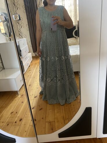 Zərif xirda zərli boz-yaşıl su yeşili tonlarda, zərif pliseli uzun don. 500 azn-a hazir olub. düz bahalı parça alinib pilese edilib atelye de tikdirilib 1ce defe geyinilib. cox keyfiyyetlidir Xüs...