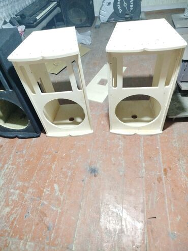 - Ölçü və yerləşim: iri güclü sabvufer və sürücülər üçün nəzərdə tutulub (şəkillərdə 1 böyük bas üçün dairəvi kəsik, üst hissədə horn/driver üçün bölmə)