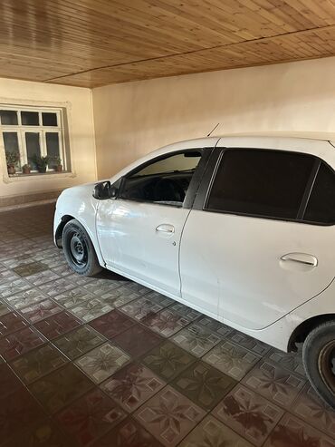 Renault Logan, ağ rəng, sedan kuzov. Xüsusiyyətlər: - 4 qapı, 5