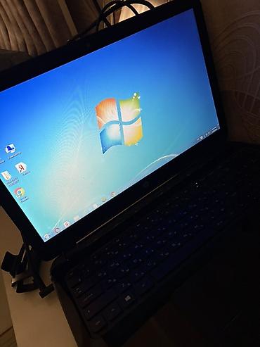 Ofis işləri, internet, təhsil və gündəlik istifadə üçün uyğun klassik HP noutbuk. Ekran və klaviatura istifadəyə hazır vəziyyətdə göstərilir, Windows 7 işə düşür.
